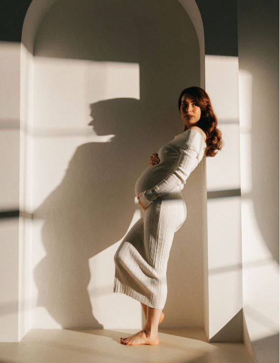 Taip. Fotosesija gali būti pritaikyta ir ankstynesniam laikotarpiui - per pozas, drabužius ir šviesą subtiliai pabrėžiamas laukimo jausmas, net jei pilvelis dar nedidelis.